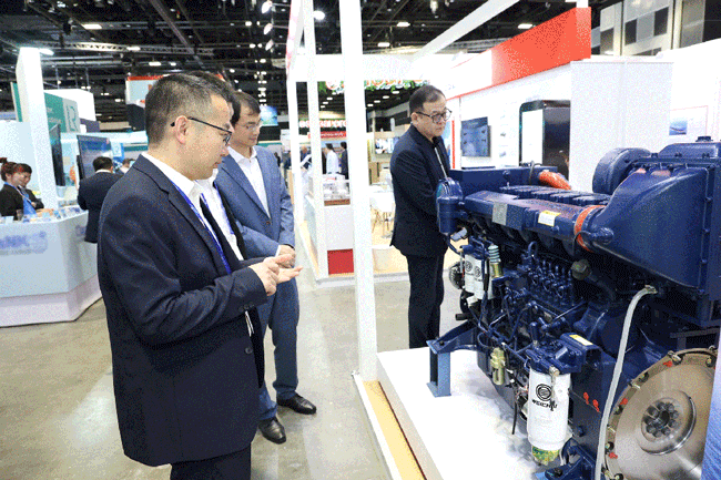 無獨(dú)有偶,在全球矚目的第19屆新加坡海事周(SMW)展會現(xiàn)場,濰柴重點(diǎn)展示了B100純生物柴油的綠色船用動力解決方案。